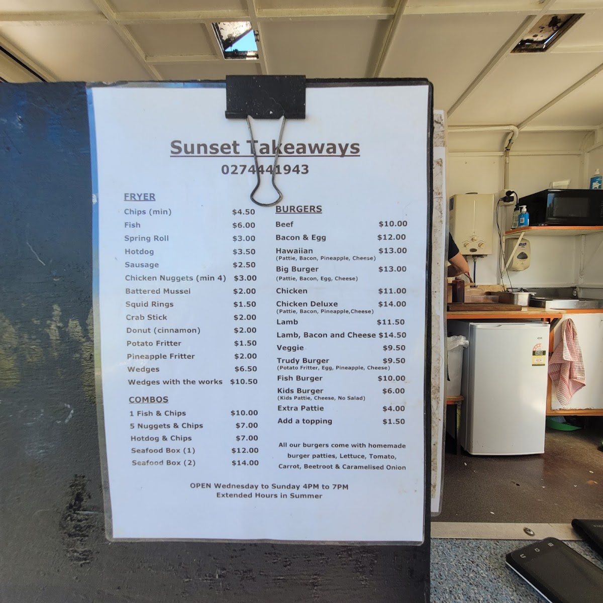 Welcome to Sunset Takeaways, a delightful fast-food oasis nestled in Port Waikato, New Zealand. This eatery perfectly marries convenience and quality with a menu that’s a feast for all palates. From their famed fish and chips, praised for its crispy batter and fresh flavors, to an array of delectable burgers, including the Big Burger and BBQ Bacon Burger, every bite sings of homemade goodness.